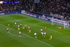 比赛第9分钟,埃因霍温防守球员禁区内解围时踢倒对方送点,普罗米斯-戴维主罚一蹴而就!