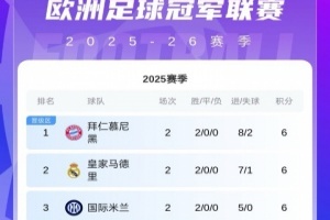 体育资讯10月1日讯 欧冠第2轮首日对阵结束,最新积分榜情况如上图。目前6分领跑的是拜仁皇马和国米三队。