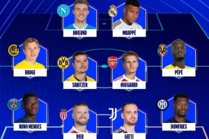 体育资讯10月2日讯 日前,欧冠官方公布了本周最佳阵容,姆巴佩、霍伊伦入选,邓弗里斯、诺尔高在列。