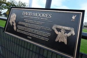 利物浦前主席大卫-摩尔斯纪念牌在红军柯比青训学院揭幕