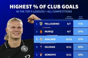 哈兰德(曼城)——57%