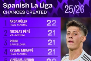 下一篇: 西甲禁区触球数排行:维尼修斯76次居首 姆巴佩第2、拉什福德第3