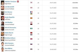 1:富安健洋(有伤) 26岁/后卫 身价1800万欧